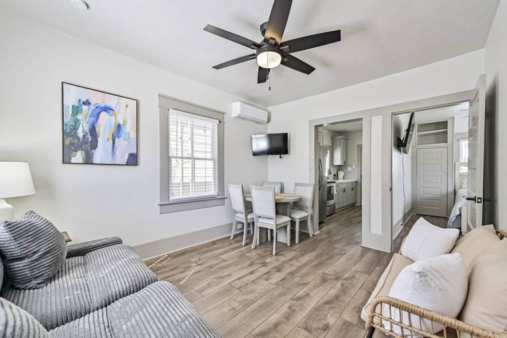Perfect Beach Retreat—just 2 blocks from the sand! This stylish 1-bedroom, 1-bath tiny home offers a cozy, modern stay near Galveston’s top attractions. Enjoy a fully equipped kitchen, fast WiFi, Smart TV, and an ultra-comfy mattress. Walk to the Seawall, Pleasure Pier, restaurants, and shops. Ideal for couples, small families, or solo travelers. Book now for your perfect beach getaway in the heart of Galveston! Modern Tiny Home – 2 Blocks from the Beach | Walk to Beach, Dining & More! Welcome to your perfect Galveston beach retreat! This newly remodeled tiny home offers a cozy, modern, and stylish escape just 2 blocks from the beach and steps from Poretto Beach. Whether you’re here for relaxation or island adventure, this space has everything you need for a comfortable and unforgettable stay. The Space • Queen bed with a plush mattress—perfect for relaxing after a beach day • Sofa bed in the living room for extra guests • Spa-style bathroom with a brand-new stand-up shower • Full kitchen: stove, oven, fridge, microwave, coffee maker, and all essentials • Smart TV & fast WiFi for streaming, work, or play • Private patio to enjoy the ocean breeze with your morning coffee or evening drink Location Highlights • Walk to the Seawall, Poretto Beach, and Pleasure Pier • Minutes from The Strand, Moody Gardens, and Schlitterbahn • Close to top-rated restaurants, bars, bike rentals & attractions • Free parking included for easy access Why Guests Love It ✔ Walk-to-the-beach location ✔ Modern and stylish tiny home ✔ Perfect for couples, solo travelers, small families, or business trips ✔ Spotlessly clean and professionally managed ✔ Unbeatable value in a prime Galveston location Book now and make lasting beach memories in this charming Galveston retreat! Guests have full and private access to the entire home, including all indoor spaces—bedrooms, bathroom, kitchen, and living areas. The backyard area and BBQ grill are shared with the front unit, but your home and entry remain fully private. Enjoy your stay with the freedom and comfort of a complete home, just steps from the beach! We give our guests space to enjoy their stay but are always available if needed. Whether you have a question, need local recommendations, or run into anything unexpected, we’re just a message or call away. We’re committed to making your Galveston getaway smooth, comfortable, and unforgettable! Our home is located in one of Galveston’s best areas, offering a perfect mix of beachside relaxation and island adventure. Situated on a safe and quiet street, you’ll enjoy a peaceful stay while being just two blocks from the beach and steps from some of the island’s top attractions. We’re on the same street as Hotel Lucine, a trendy boutique hotel, and just two blocks from Porretto Beach, a well-known private beach with chair rentals and easy access to the sand and surf. The neighborhood is ideal for families, couples, and groups looking for a mix of tranquility and convenience. Nearby Attractions & Highlights: ✔ Seawall Boulevard – A short walk away, offering beachfront dining, bike rentals, and stunning sunset views. ✔ Historic Pleasure Pier – Just a quick drive or bike ride to enjoy rides, games, and family fun over the Gulf of Mexico. ✔ Downtown Galveston / The Strand – A 5-minute drive to discover local shops, art galleries, historic sites, and delicious restaurants. ✔ Moody Gardens & Schlitterbahn Waterpark – Perfect for family-friendly adventures, both within a 10-15 minute drive. ✔ Local Dining & Nightlife – From casual beachside cafés to upscale dining, you’ll find plenty of food, drinks, and entertainment nearby. With its prime location, peaceful setting, and easy access to Galveston’s best attractions, our neighborhood is the perfect place to experience everything this vibrant island has to offer! Our home is in a prime location, making it easy to explore Galveston by walking, biking, or driving. The beach is just two blocks away, and you can stroll to nearby restaurants, Hotel Lucine, and Porretto Beach. The Seawall Boulevard offers bike rentals and scenic paths, perfect for cruising along the coast. If you’re heading to The Strand, Moody Gardens, or Schlitterbahn, a quick drive or Uber will get you there in minutes. Free street parking is available for convenience! To ensure a comfortable stay for everyone, please keep the following in mind: • Registered guests only – no unapproved visitors or extra guests • No parties or events • No smoking indoors – thank you for respecting our space • Quiet hours after 10 PM – please keep noise to a minimum • The backyard and BBQ grill are shared with the front unit We appreciate your understanding and look forward to hosting you!